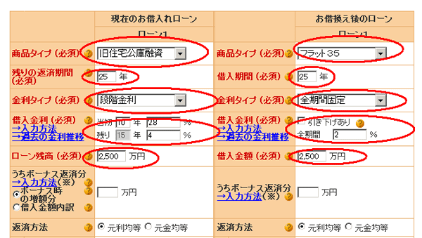 を入力し、次にお借換え後のローン条件を入力します。
